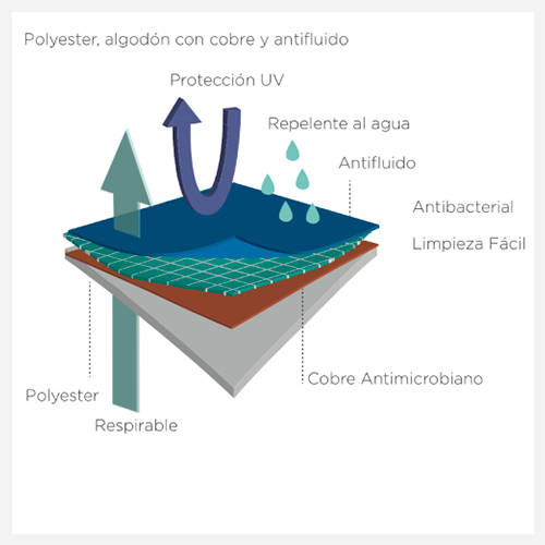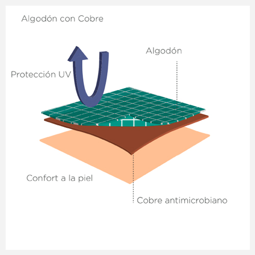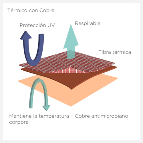 Tecnología que actúa como aislante térmico permitiendo mantener estables los niveles de temperatura en el cuerpo, complementando el control de la proliferación de bacterias.