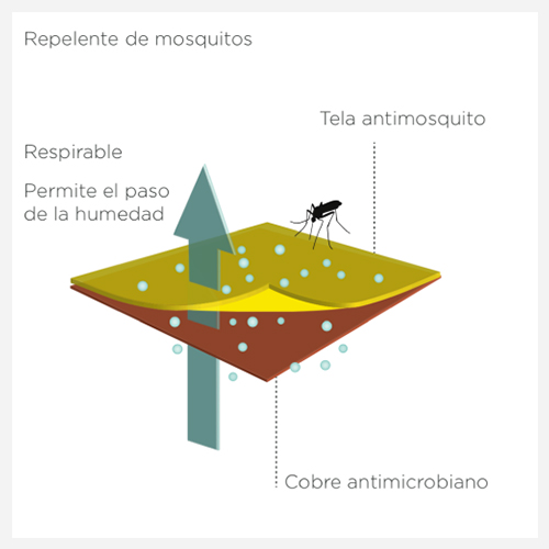 Tecnología que permite repelencia a los mosquitos complementando el control de la proliferación de bacterias.